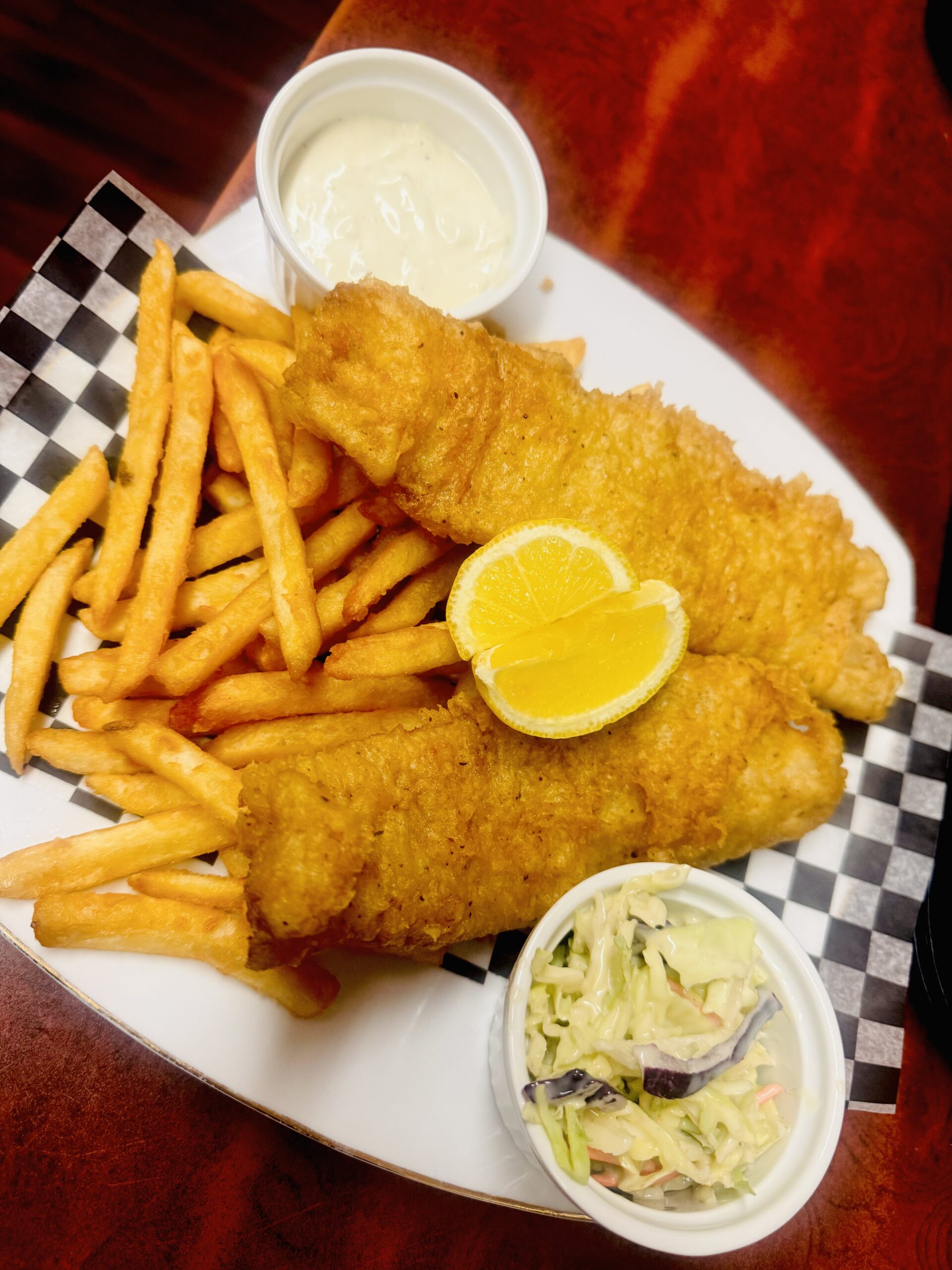 Be the first to review “2 piece cod fish with fries, lemon and coleslaw”
